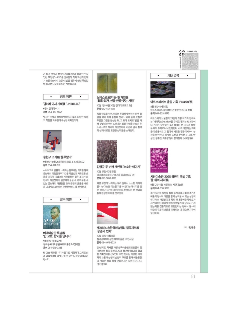 | [25.09.] 대구 25년 09월 전시정보 (0) | 2025.08.27 |