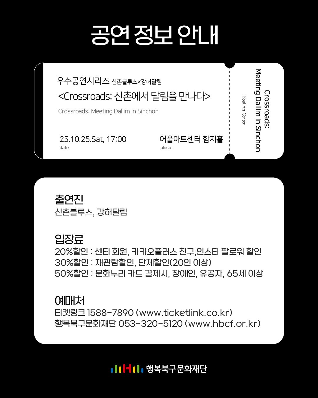 [티켓링크] 우수공연 초청 신촌블루스 × 강허달림 < Crossroads: 신촌에서 달림을 만나다 >