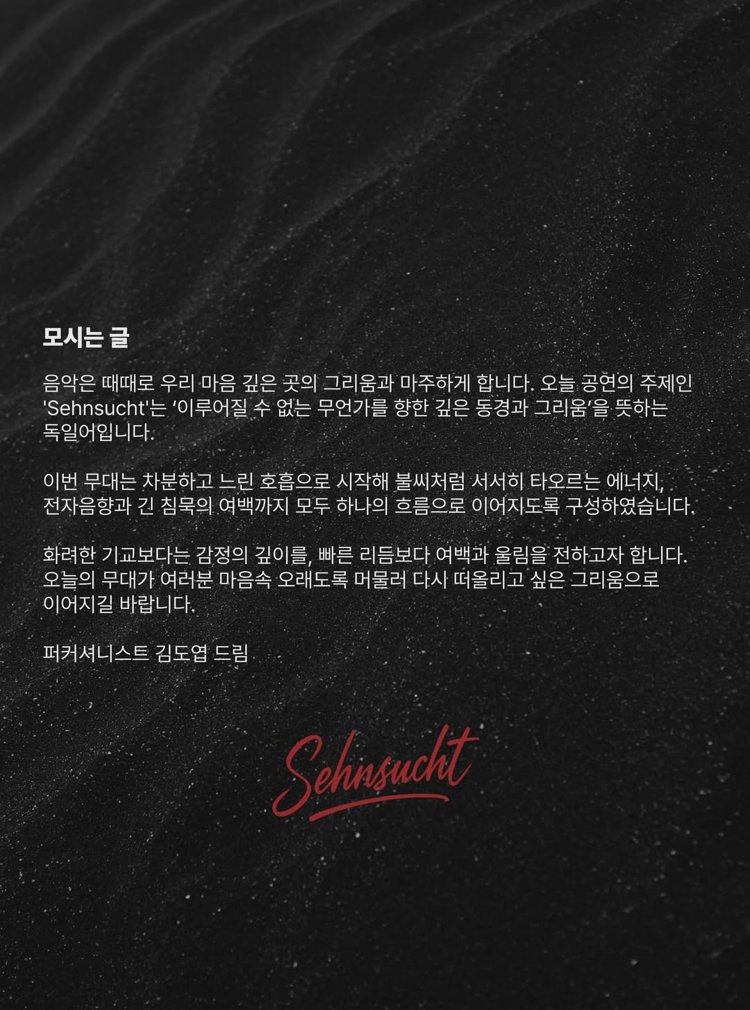 | [25.11.09.] 김진우 바순 리사이틀 - 대구 (0) | 2025.10.14 |
