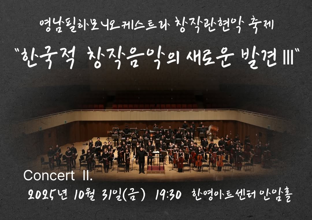 | [25.10.30.] 한국적 창작음악의 새로운 발견 III - Concert I (대구) (0) | 2025.10.19 |