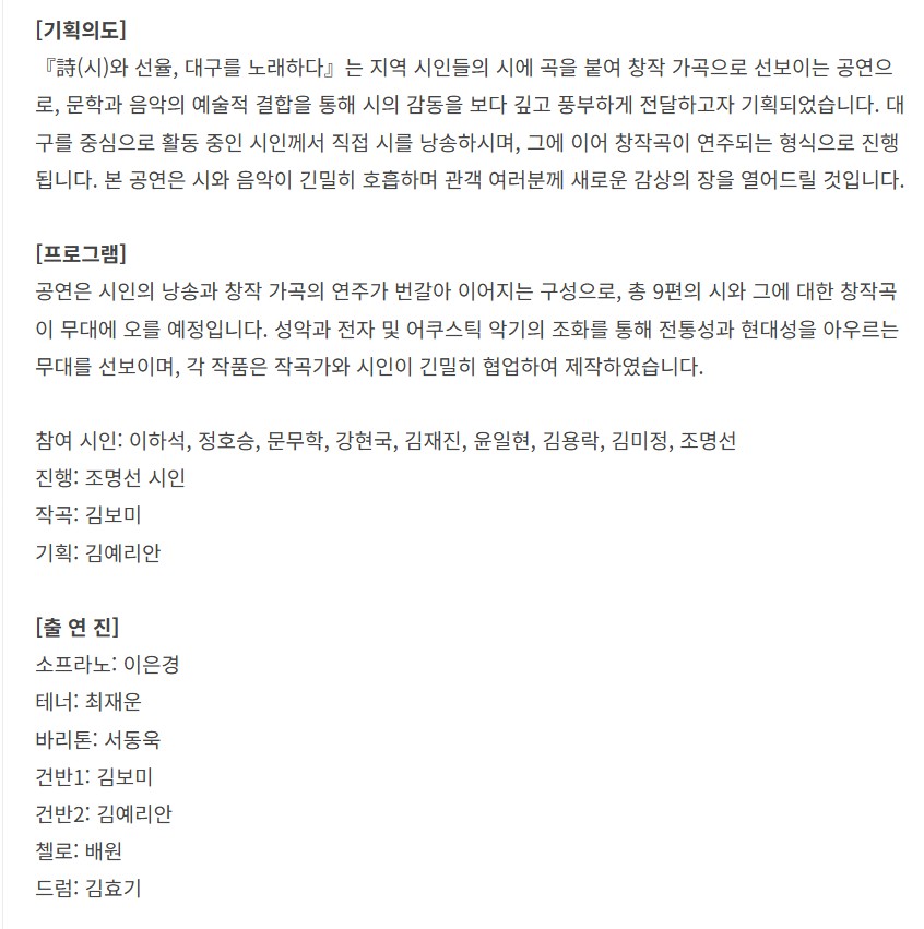 [티켓링크] 詩(시)와 선율, 대구를 노래하다